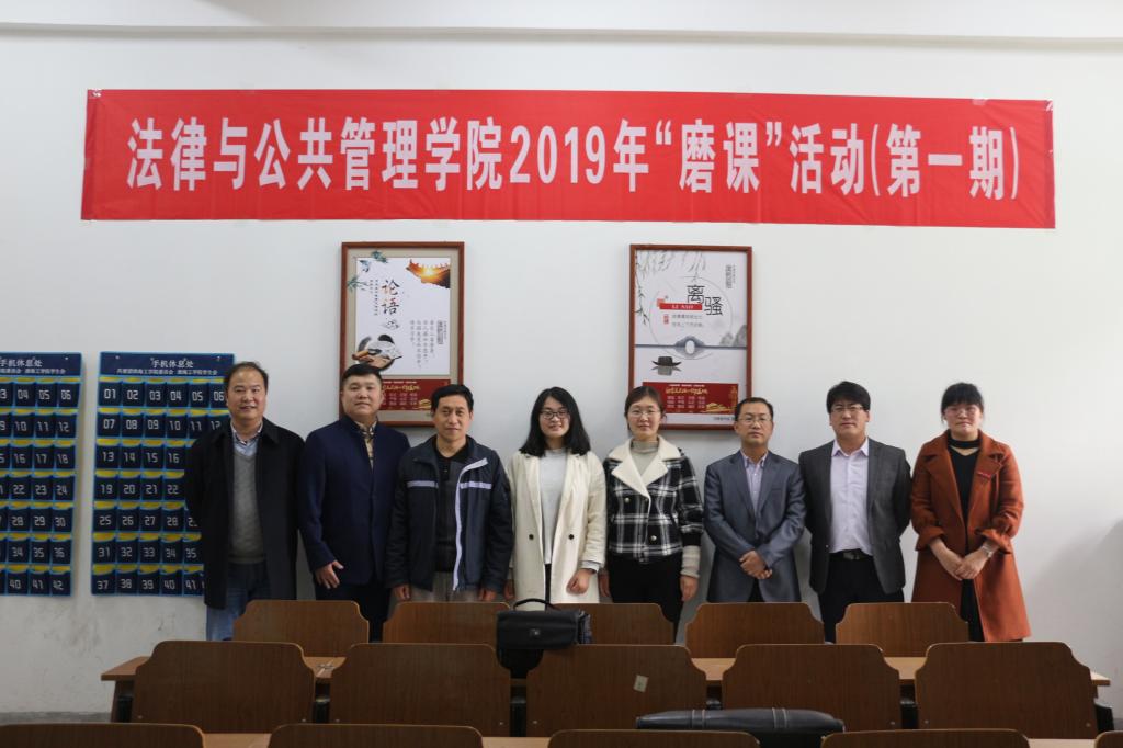 为营造良好的教学经验交流氛围,进一步提升全院教师教学水平,加快建设高水平本科教育,4月30日下午,法律与公共管理学院2019年第一期“磨课”活动在文通楼108教室举行。参加首期交流的教师有许丽娜、蒋莹莹、李敏、赵向华、颜金、王明忠、吴建国和王超锋等八位老师,法律与公共管理学院党总支书记朱国良应邀观摩指导。