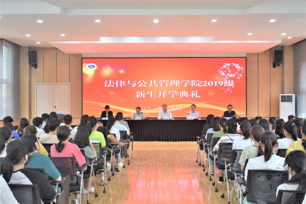 秋高气爽,晴空万里,空气中满是丰收的喜悦。9月1日下午4时,法律与公共管理学院2019级新生开学典礼在通灌校区诚意楼报告厅隆重举行。院领导朱国良、陈兴发、王国银、魏范青、李敏,部分系主任、全体辅导员、2019级班主任及全体新生参加了典礼,典礼由院党总支副书记王国银主持。