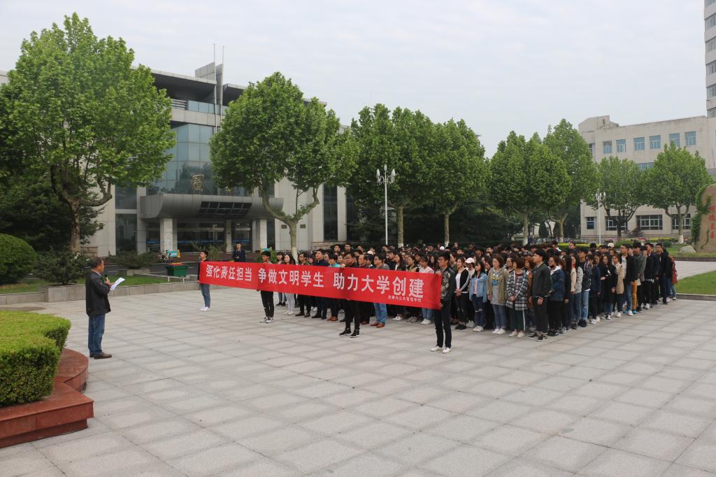 随后,国家奖学金获得者、省级优秀学生干部张洪烨作为学生代表发言,她说,作为大学生,我们也要主动承担起自己的责任,既要认真学习,也要重视基础文明,认识到文明的细节将在某种程度上成为大学创建的影响因素,我们将以实际行动为大学创建贡献自己的力量。