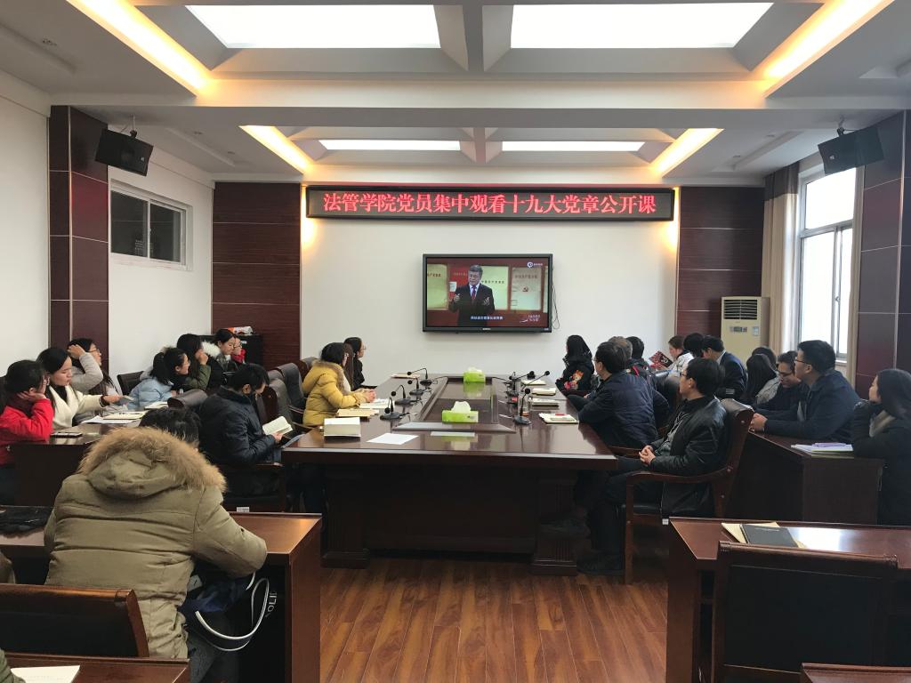 12月6日下午,法律与公共管理学院组织全体师生党员在文渊楼216会议室集中观看十九大党章的公开课,深入学习领会十九大新党章。