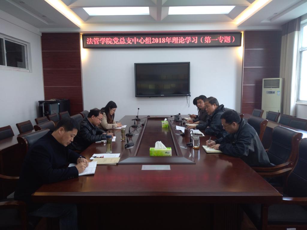 3月30日下午,法律与公共管理学院在文渊楼216会议室举行党总支中心组2018年第一专题理论学习,法律与公共管理学院全体院领导、支部书记参加,学习会由院党总支书记朱国良主持。