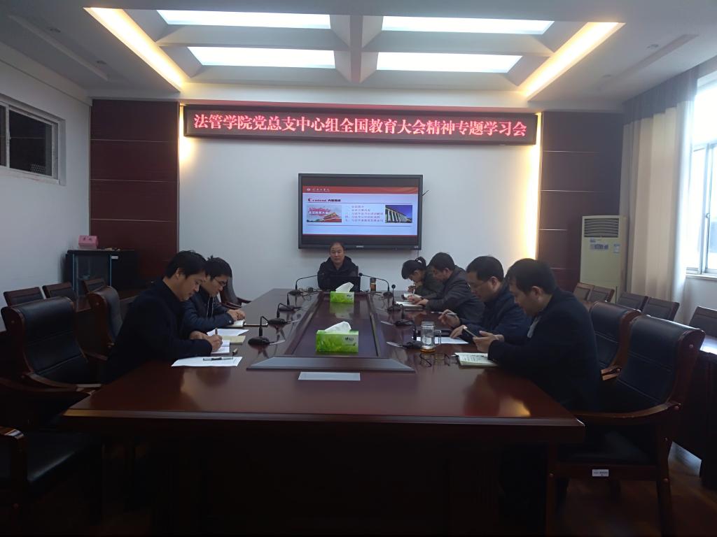 11月30日下午,法律与公共管理在文渊楼216会议室举行党总支中心组理论学习,专题学习全国教育大会精神,学院全体院领导、部分支部书记参加,学习会由院党总支书记朱国良主持。