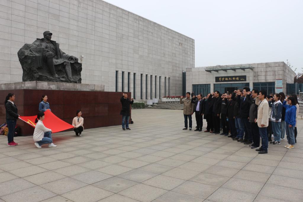在重温入党誓词后,师生党员们走进彭雪枫纪念馆进行参观学习。彭雪枫纪念馆,是为纪念一代名将、新四军第四师师长兼淮北军区司令员彭雪枫将军而建。纪念馆集中展示彭雪枫将军一生光辉历程,馆内展出有关彭雪枫珍贵照片200余幅,历史资料和文物100多件。纪念馆采用国画、油画、雕塑、场景复原等多种手法,全方位再现彭雪枫将军的戎马一生和文武兼备的才华。在历次战斗中,彭雪枫披坚执锐,身先士卒,屡建奇功,被誉为中央红军中“优秀的青年将领、模范的政治委员”,荣获“红星奖章”,被毛泽东、朱德誉为“共产党人的好榜样”。