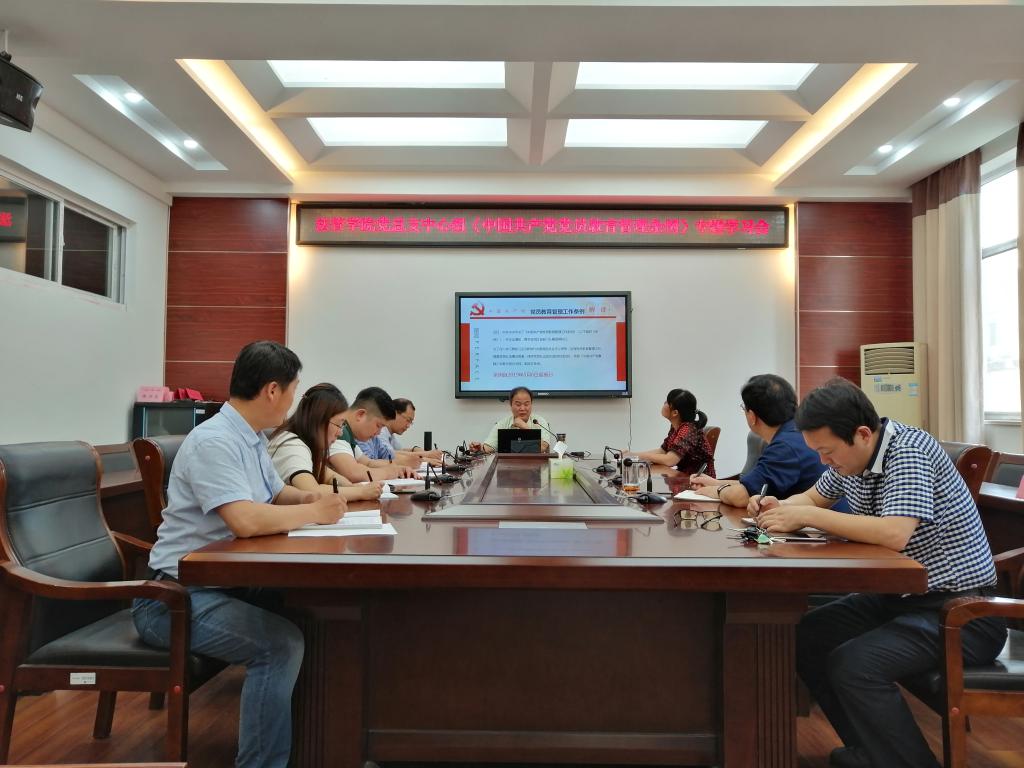 5月31日下午,我院在文渊楼216会议室开展党总支中心组理论学习,专题学习《中国共产党党员教育管理条例》,学院全体院领导、支部书记参加,学习会由院党总支书记朱国良主持。