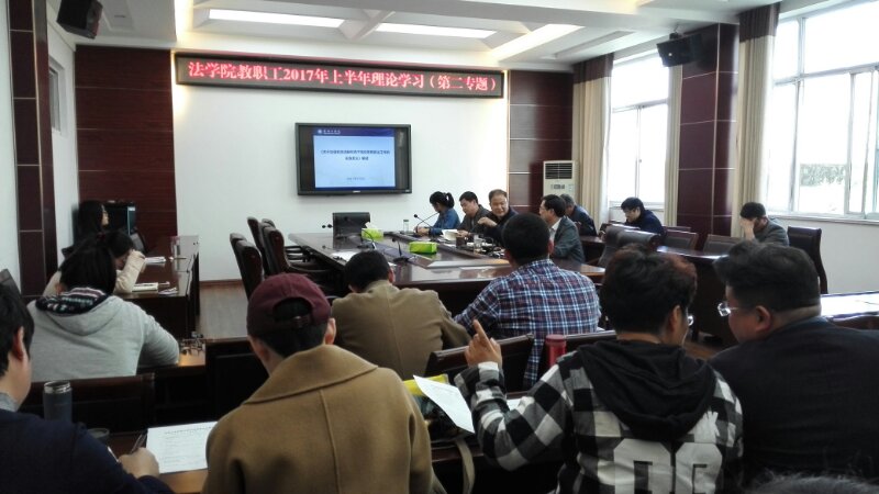 4月26日下午,法学院在文渊楼216会议室开展2017年上半年第二次教职工理论学习,对《关于加强和改进新形势下高校思想政治工作的意见》进行进一步的学习领会。法学院全体教师参加,学习会由法学院党总支书记朱国良主持。