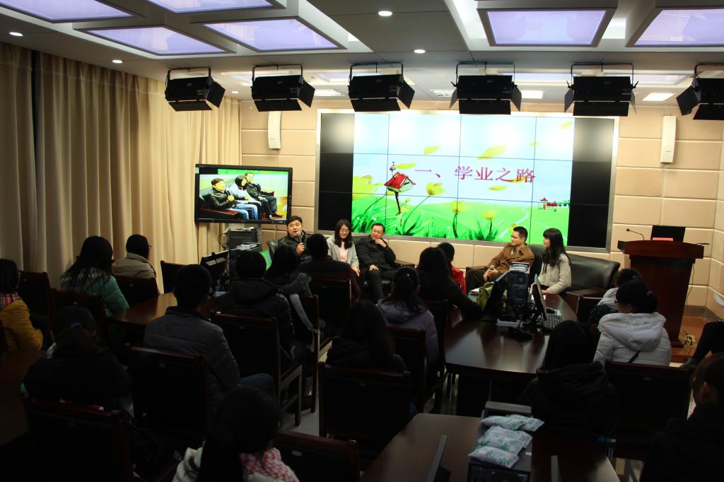 活动中,同学们与博士们还就手机对课堂教学的影响、女生考博问题作了深入的交流。最后,博士们分别表达了对大学生的祝福和期待,“如果你的理想高于现实,那么你的明天会好于今天”,努力奋斗才会有美好的明天。