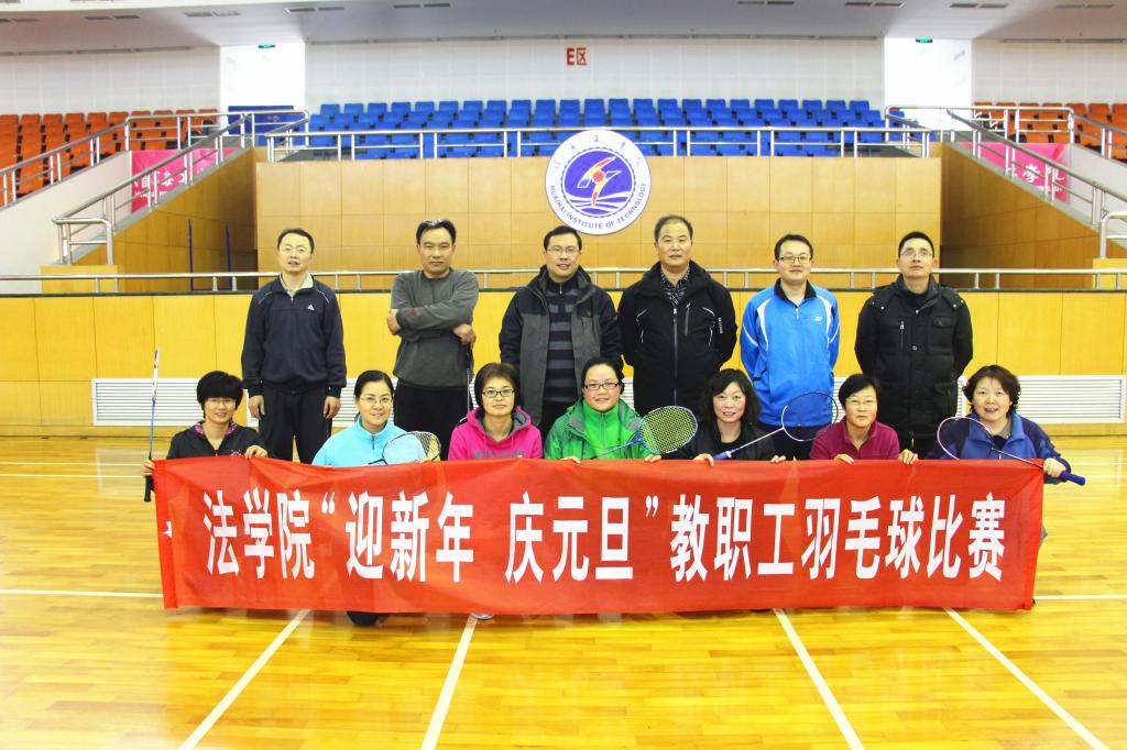 为迎接即将到来的2016年,丰富学院教职工业余生活, 12月27日上午,由法学院工会组织的“迎新年庆元旦”教职工羽毛球比赛在苍梧校区体育馆顺利举行。