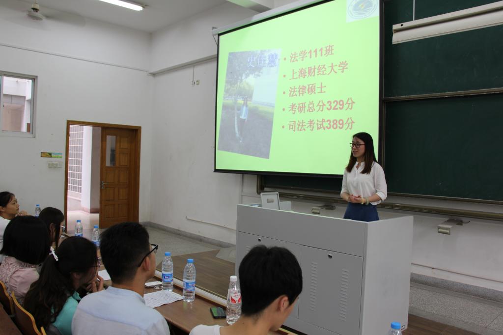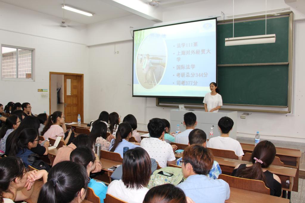 整个交流会现场激情洋溢,同学们专心听讲,积极交流。本次交流会充分调动了同学们考研和司考的积极性,了解了一些有效的考研和司考的方法,对低年级同学起到很好的引导作用。