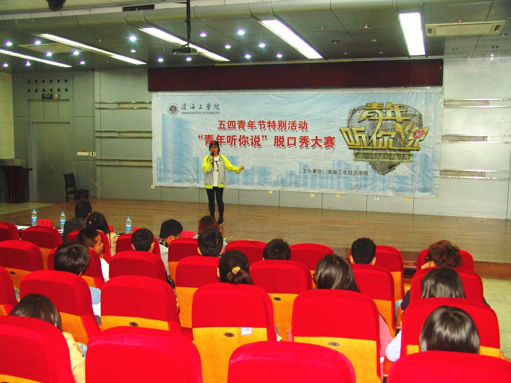 “今天正逢青年节,我们希望通过这样脱口秀的形式,让大家尽情地发表自己的心声,展现我们当代青年崭新的、多元化的精神面貌。”法学院学生会主席徐颖同学说道。