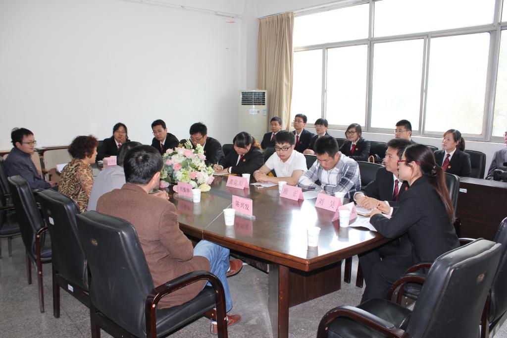 下午,连云港市新浦区法院副院长卜玉霞、团区委副书记龚克天带领区法院12名青年法官来我校观看、指导法学院学生的模拟法庭表演。模拟法庭开庭之前,法学院党政领导与来访嘉宾召开了简短的交流会,会上,法学院院长杨雪英致欢迎辞并简要介绍法学院情况,交流会由法学院党委书记吕振华主持。