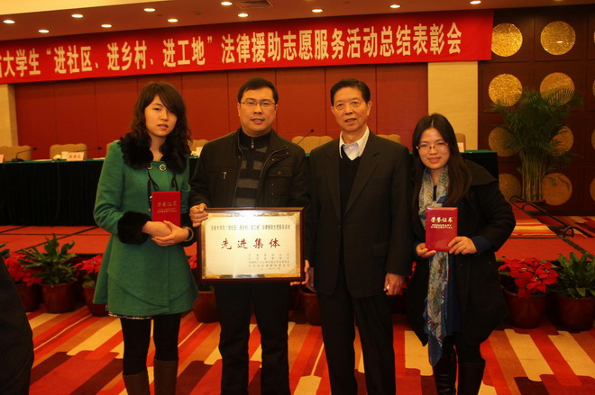 12月12日上午,全省大学生“进社区、进乡村、进工地”法律援助志愿服务活动总结表彰大会在南京举行,我校荣获“先进集体”荣誉称号,法学院张玉萍老师被评为“先进个人”,赵冬磊、李燕茹、单雪芬三位同学被评为“优秀大学生志愿者”。
