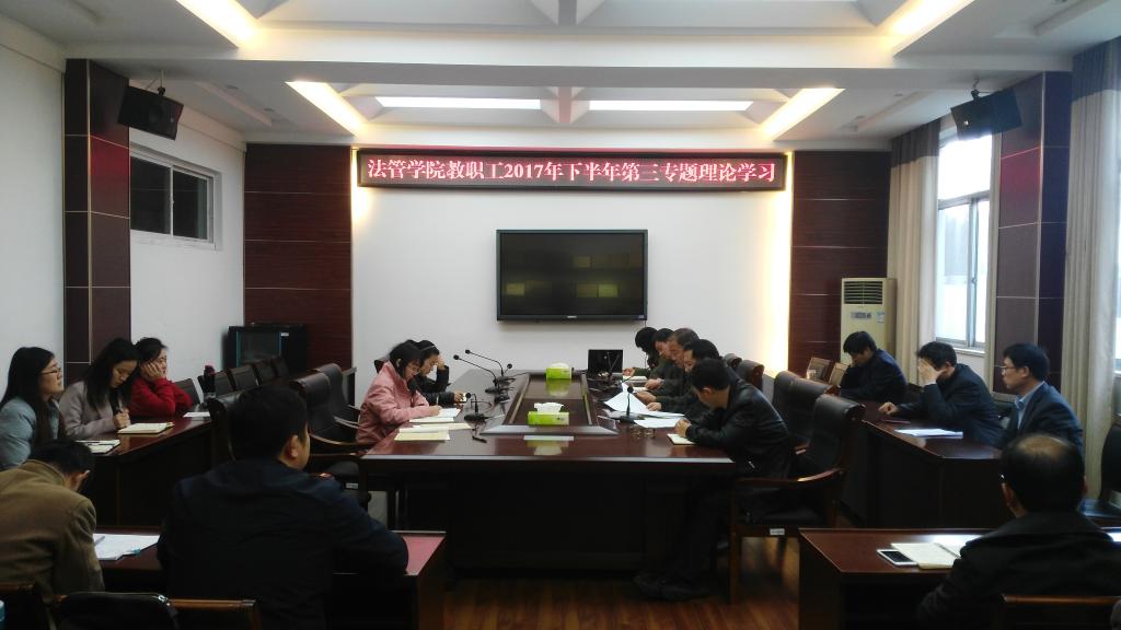 11月15日下午,法管学院在文渊楼216会议室开展2017年下半年第三次教职工理论学习。法管学院全体教师参加,学习会由法管学院党总支书记朱国良主持。