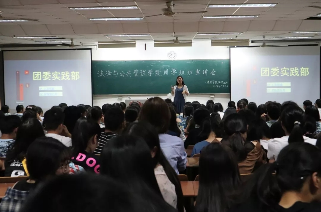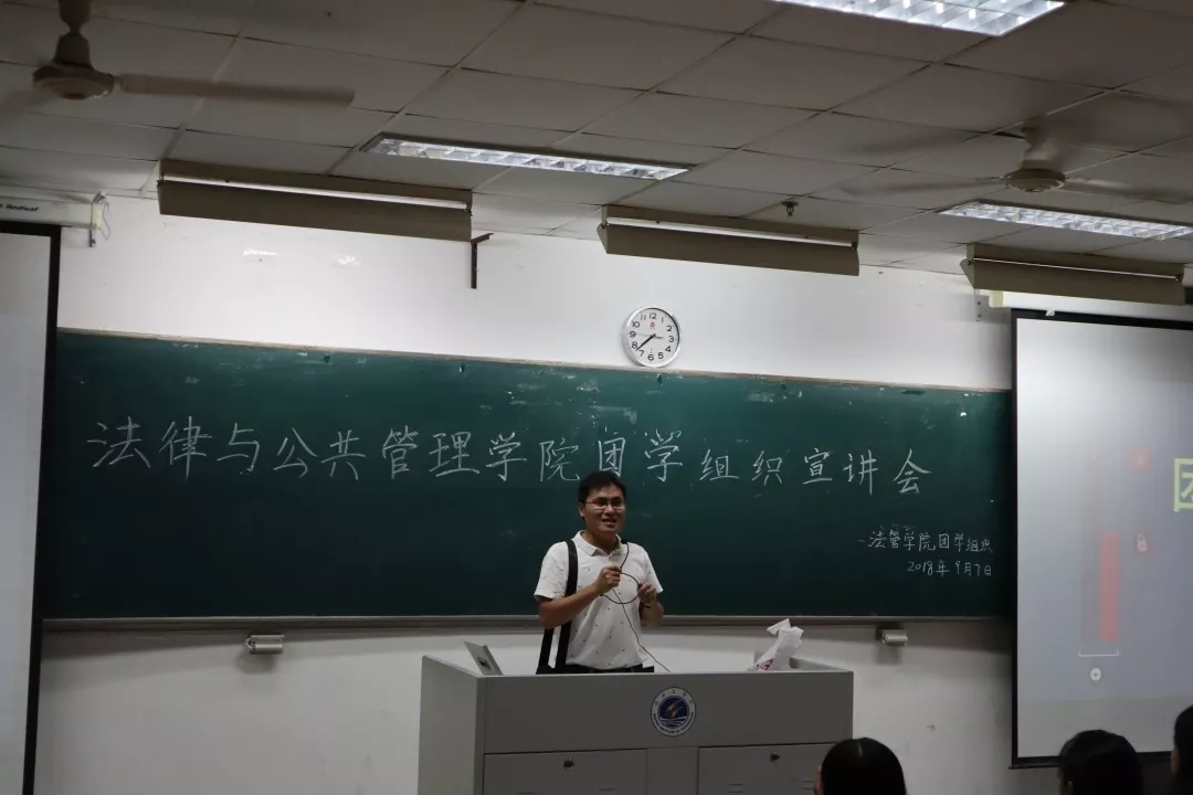 9月7日晚8时,法管学院团学组织宣讲会在TZ202如期召开。团委书记崔家新、新生辅导员蒋莹莹分别做动员讲话,学生会、团委和新媒体三大组织成员主讲,此次宣讲会面向法管学院18级全体新生,旨在为新生提供一个提升能力、锻炼自己的平台。