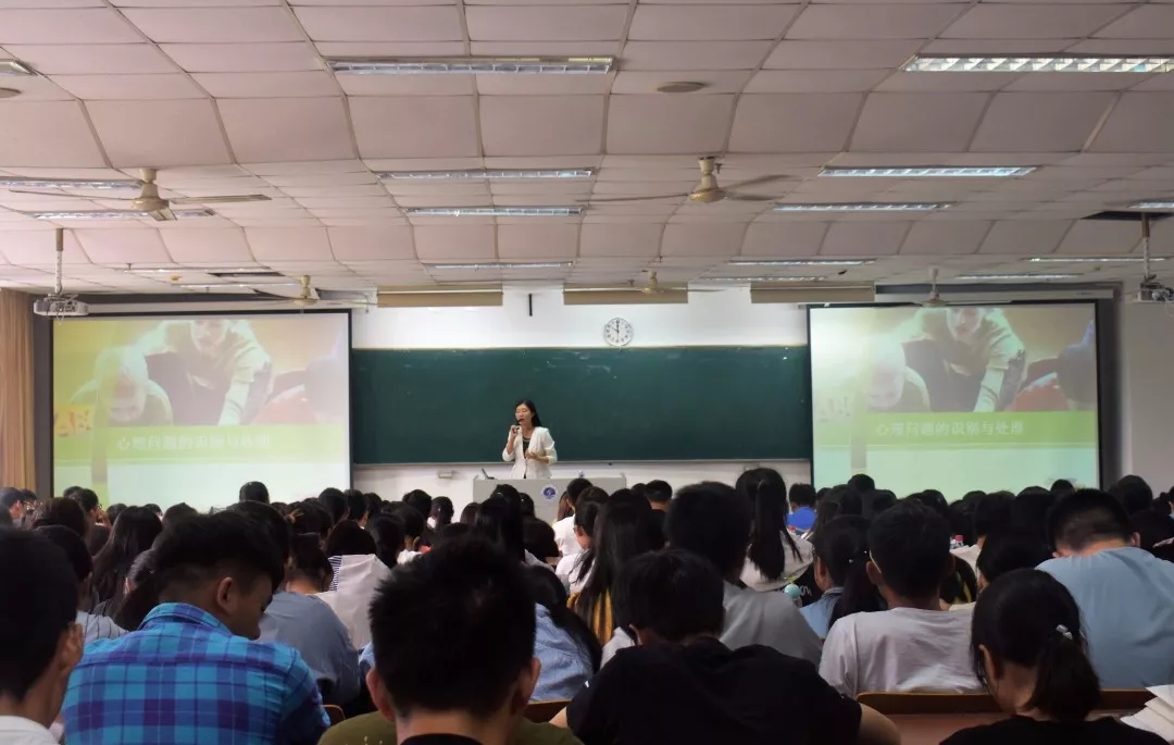 讲座中,蒋莹莹老师首先从具体案例讲起,给新生们详细讲解了什么是心理问题、心理问题的种类、正常心理与异常心理的区别。她指出,心理问题和身体问题是相似的,早发现早治疗,并教给新生们区别正常心理和异常心理的方法。随后,蒋老师建议新生们要学会调整自己,知足常乐,做一个有素质的人,同时要提高自身的情商。情商高了,朋友多了,人的心情就会愉悦,这样患有心理疾病的几率就会小很多。