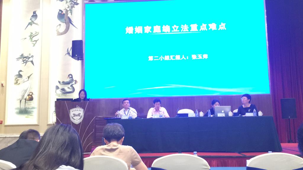 张玉萍结合中国立法结婚制度一夫一妻制、法定结婚年龄、禁止一定范围的血亲结婚、妇女待婚期、患有法定疾病等方面做了交流发言。张玉萍认为,立法应当禁止直系姻亲结婚,即禁止公公娶儿媳、丈母娘嫁女婿,否则会出现“慈祥的爷爷是否要改称继父?亲爱的外婆是否改口后妈?”等严重违背人伦的现象!对于禁止结婚的疾病问题,张玉萍认为,原《婚姻登记条例》取消婚前强制体检,违反了《婚姻法》与《母婴保健法》相关规定,也让法律规定的禁止结婚疾病的条件形同一纸空文。张玉萍还认为,从风险防范、国家公共安全、人口素质等角度出发,建议恢复强制婚前体检制度,积极倡导恋前(确立恋爱关系前)健康体检。张玉萍副教授的发言生动幽默、案例详实、慷慨激昂,所提出的观点引起与会代表的热议与肯定。此外,张玉萍还代表第二小组在大会上进行了“婚姻家庭编立法重点难点”汇报发言,受到与会者的一致好评。