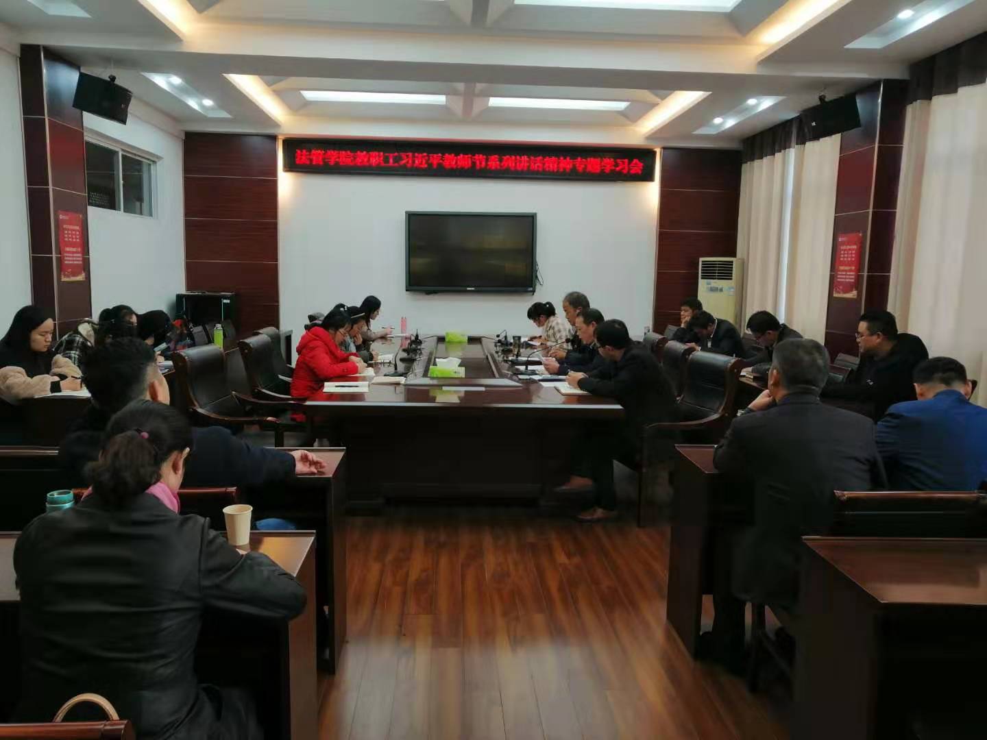 11月13日下午,法律与公共管理学院在文渊楼216会议室开展下半年教职工理论学习,专题学习习近平总书记教师节系列重要讲话精神,学院全体教职工参加,学习会由院党总支书记朱国良主持。