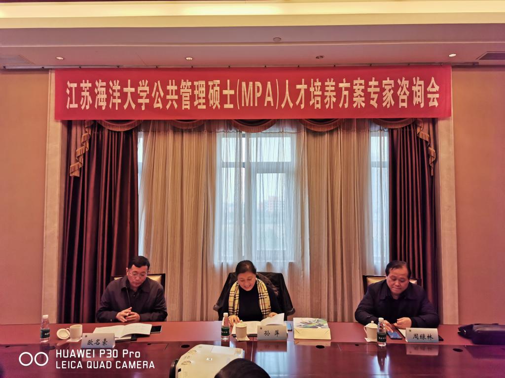 为进一步优化公共管理硕士(MPA)硕士学位人才培养方案,提高研究生人才培养质量,11月29日下午,我校在镇江召开了公共管理硕士(MPA)硕士学位人才培养方案专家咨询会,本次咨询会邀请了教育部高等学校公共管理类学科教学指导委员会副主任委员、全国公共管理专业学位研究生教育指导委员会委员孙萍教授、教育部高等学校公共管理类学科教学指导委员会副主任委员欧名豪教授和江苏省管理学类研究生教育指导委员会委员周绿林教授等校外同行专家对我校MPA硕士学位人才培养方案进行评议。参加本次会议的还有江苏海洋大学副校长、MPA教育中心主任许兴友教授、研究生处处长刘玮炜教授、法律与公共管理学院院长吴价宝教授、原法律与公共管理学院院长陈兴发教授、MPA教育中心常务副主任魏范青副教授等。
