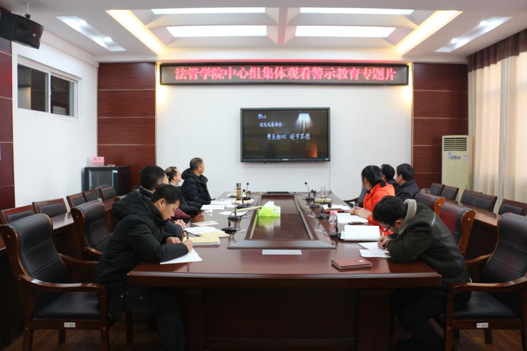 12月29日上午,法律与公共管理在文渊楼216会议室召开党总支中心组会议,集中观看廉政警示教育片《为了政治生态的海晏河清》。学院全体院领导、支部书记参加。