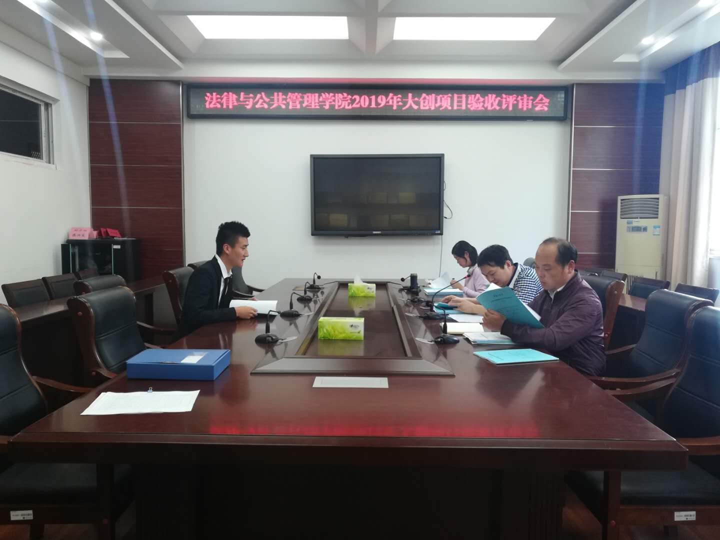 5月27日下午,我院在文渊楼216会议室举行了2019年大创项目验收评审会,参加本次验收的是2018年立项的校级和校级自筹项目。大创项目结项专家评审委员会由法律与公共管理学院副院长魏范青、法学系主任吕汇和公共管理系主任何俊武组成,拟结项的各项目主持人和2019年新立项的部分大创项目主持人参加了此次评审会。