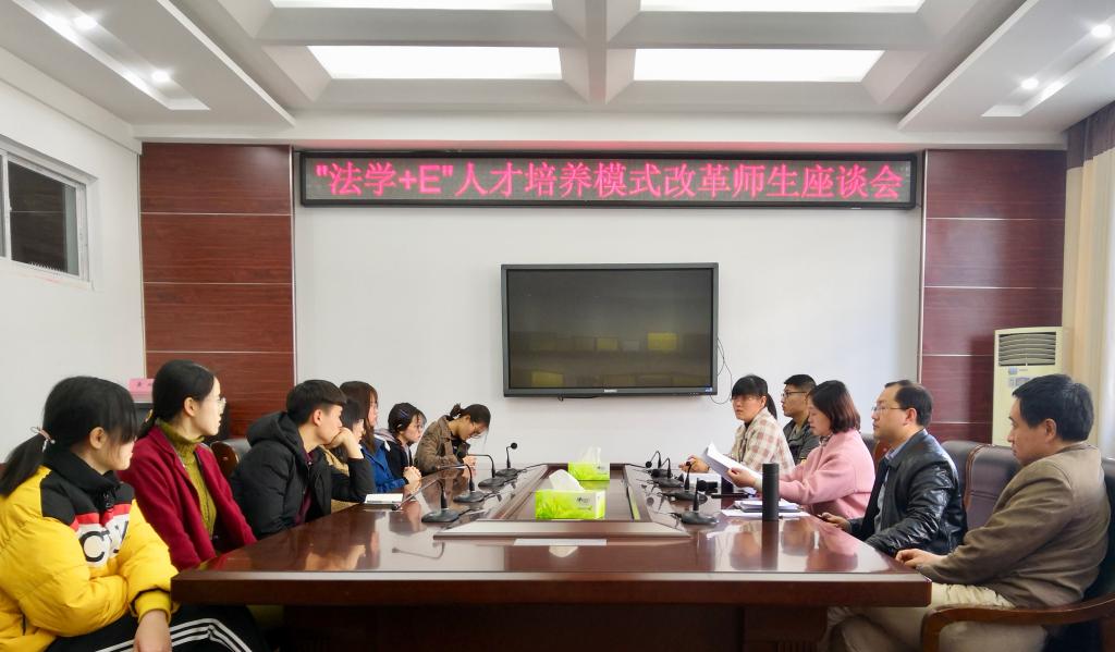 为更好地了解“法学+E”人才培养模式的教学运行情况,进一步落实“法学+E”人才培养方案,3月15日上午,我院在文渊楼216会议室召开了“法学+E”卓越法律人才培养模式改革师生座谈会。院长助理李敏、法学系主任吕汇、副主任吴建国、“法学+E”课程教师代表王超锋及2018级涉外法学方向的学生代表参加了会议。会议由李敏主持。