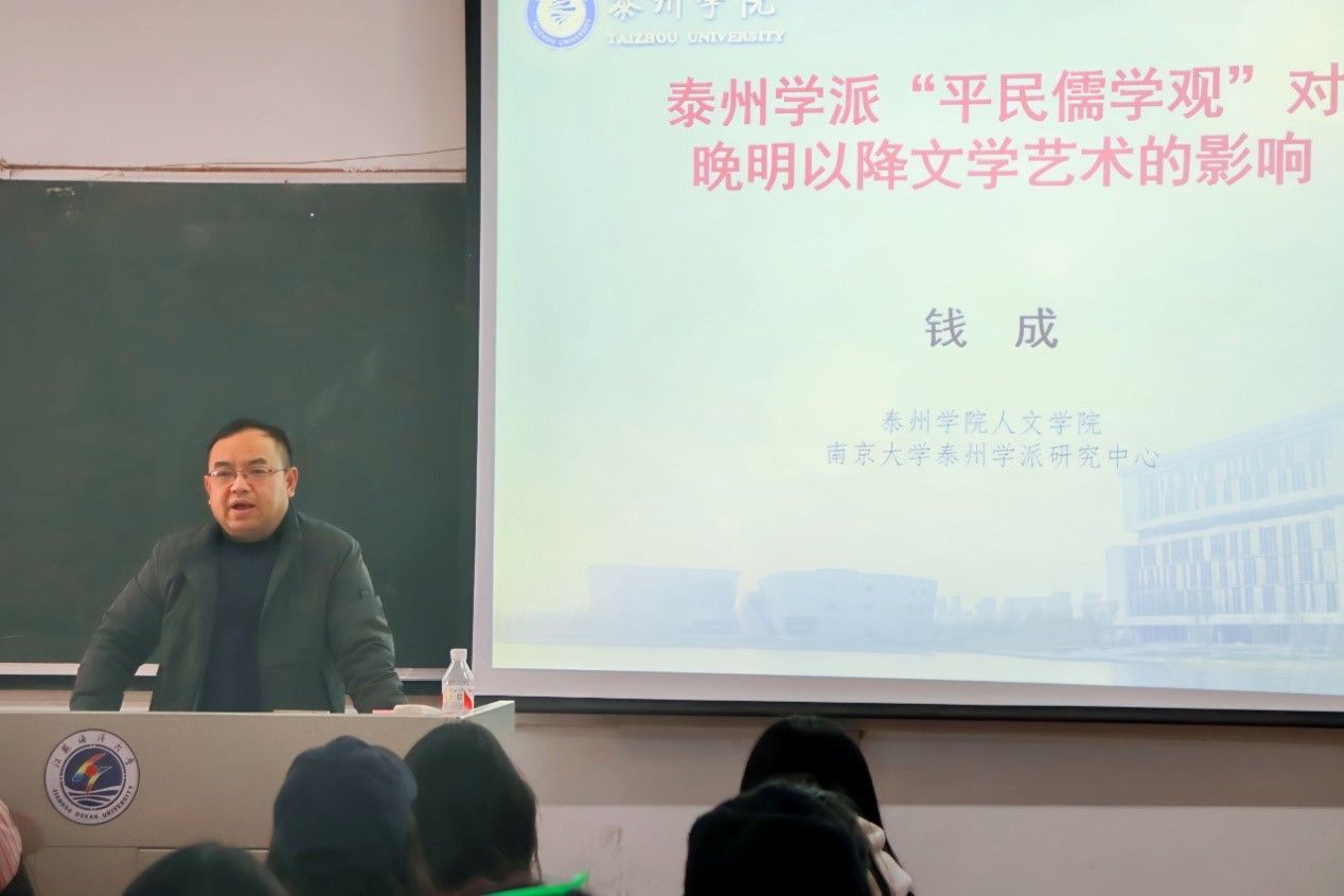 3月24日下午3时,文法学院于通灌校区明德105室开展《泰州学派“平民儒学观”对晚明以降文学艺术的影响》的专题讲座。泰州学院的人文学院院长钱成担任主讲,文法学院党委副书记王国银和辅导员徐科宇出席讲座。