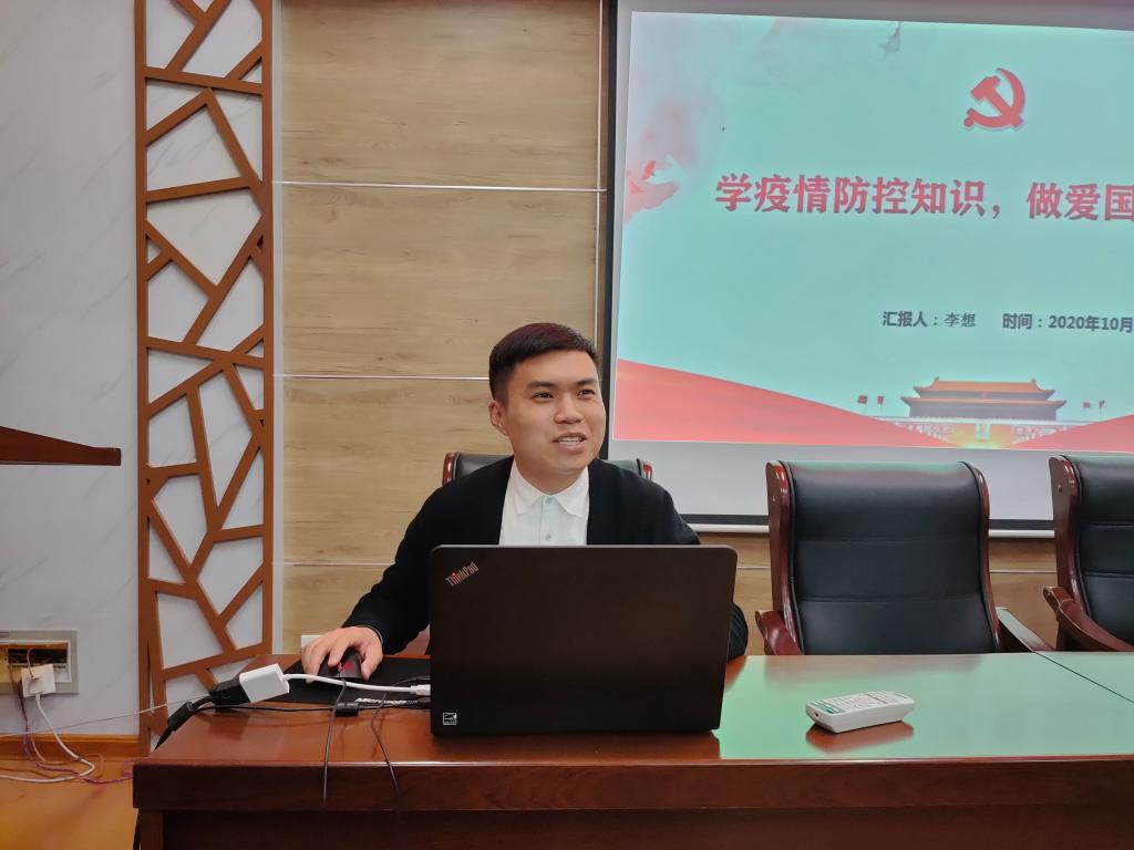 会议伊始,班主任杨舒萌老师首先向大家介绍了我院研究生日常管理的主要内容,并组织进行了2020级研究生新生的班委选举工作,之后邀请到了辅导员李想老师为大家进行与疫情防控相关的爱国主义入学教育。