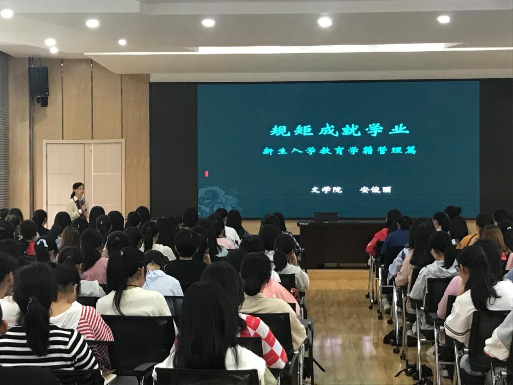 9月19日上午9时,文学院“规矩成就学业——新生入学教育学籍管理篇”教育讲座在通灌校区诚意楼顺利举行,文学院院长安俊丽作为本次活动的主讲人。