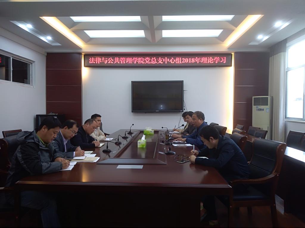 10月24日下午,法律与公共管理在文渊楼216会议室开展党总支中心组2018年下半年第二专题理论学习,学院全体院领导、支部书记参加,学习会由院党总支书记朱国良主持。