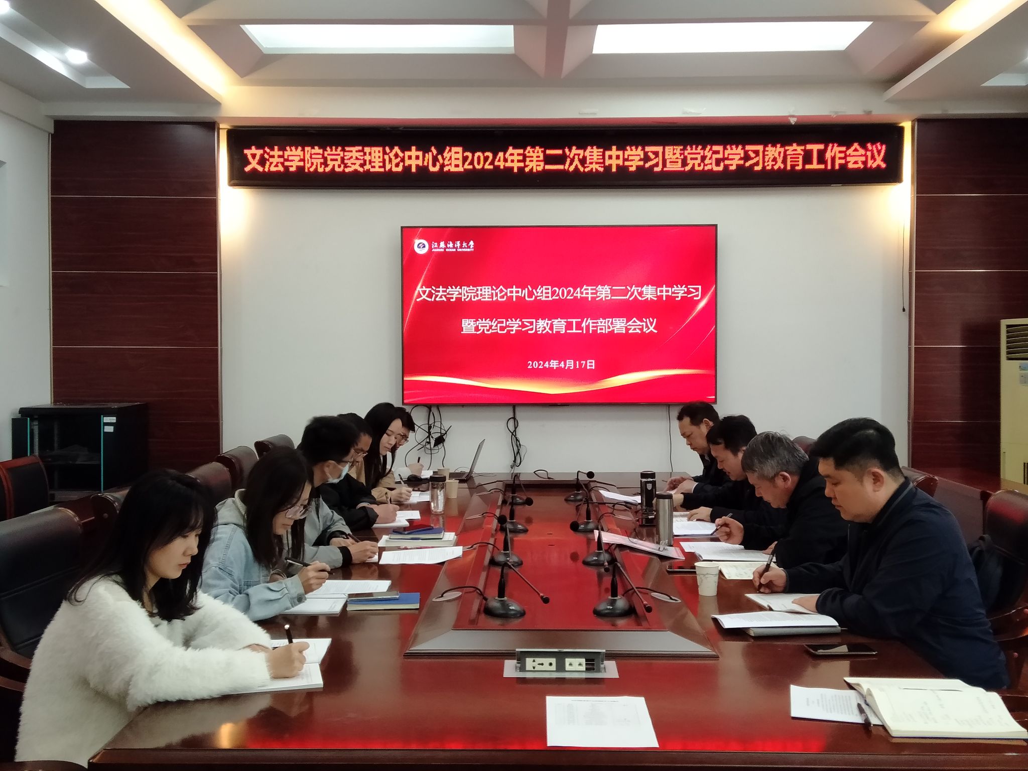 4月17日下午,文法学院在文渊楼216召开2024年党委理论学习中心组第二次学习会议暨党纪学习教育工作部署会议。院党委书记魏范青主持会议,院领导班子成员、党支部书记参加会议。