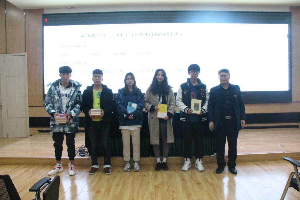 接着,吴院长解读了文学院的人才培养方案,说明了传统教学和现代教学的区别,强调了现代教学的重要性。以汉语言文学专业为例,吴院长教导同学们要“能说会写有形象,敢爱敢恨有担当”,并以此来勉励同学们,做一个优秀的人。讲座尾声,吴院长赠予新生每班三本经典书目,做图书漂流,鼓励同学们多读书,读好书。