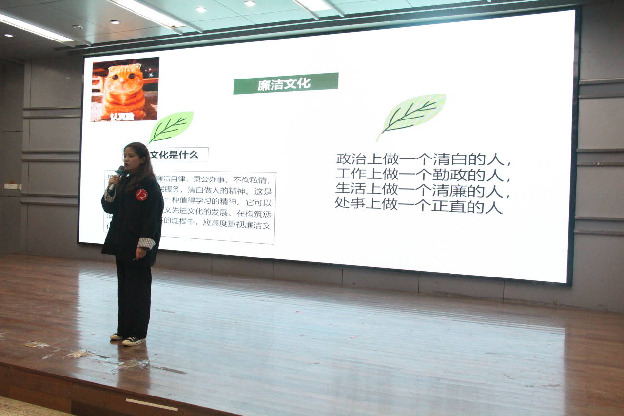 水产192的高亚楠的诗朗诵《守初心,奉廉洁》回顾了往昔中国的发展与伟人做出的贡献,又着眼于当今,对中国的未来进行畅想,鼓舞人们牢记使命,廉洁奉公;地信191的姜耀先同学的演讲《廉洁清风,伴我前进》中举例如于成龙、孙叔敖等清官名臣榜样,讲道:“新时代青年应积极践行社会主义核心价值观,做一个正直的人。”随后登台的同学围绕廉洁主题依次演讲、朗诵,道出心中廉洁的模样及自身对廉洁的思考,整场比赛演讲慷慨激昂,朗诵铿锵有力。