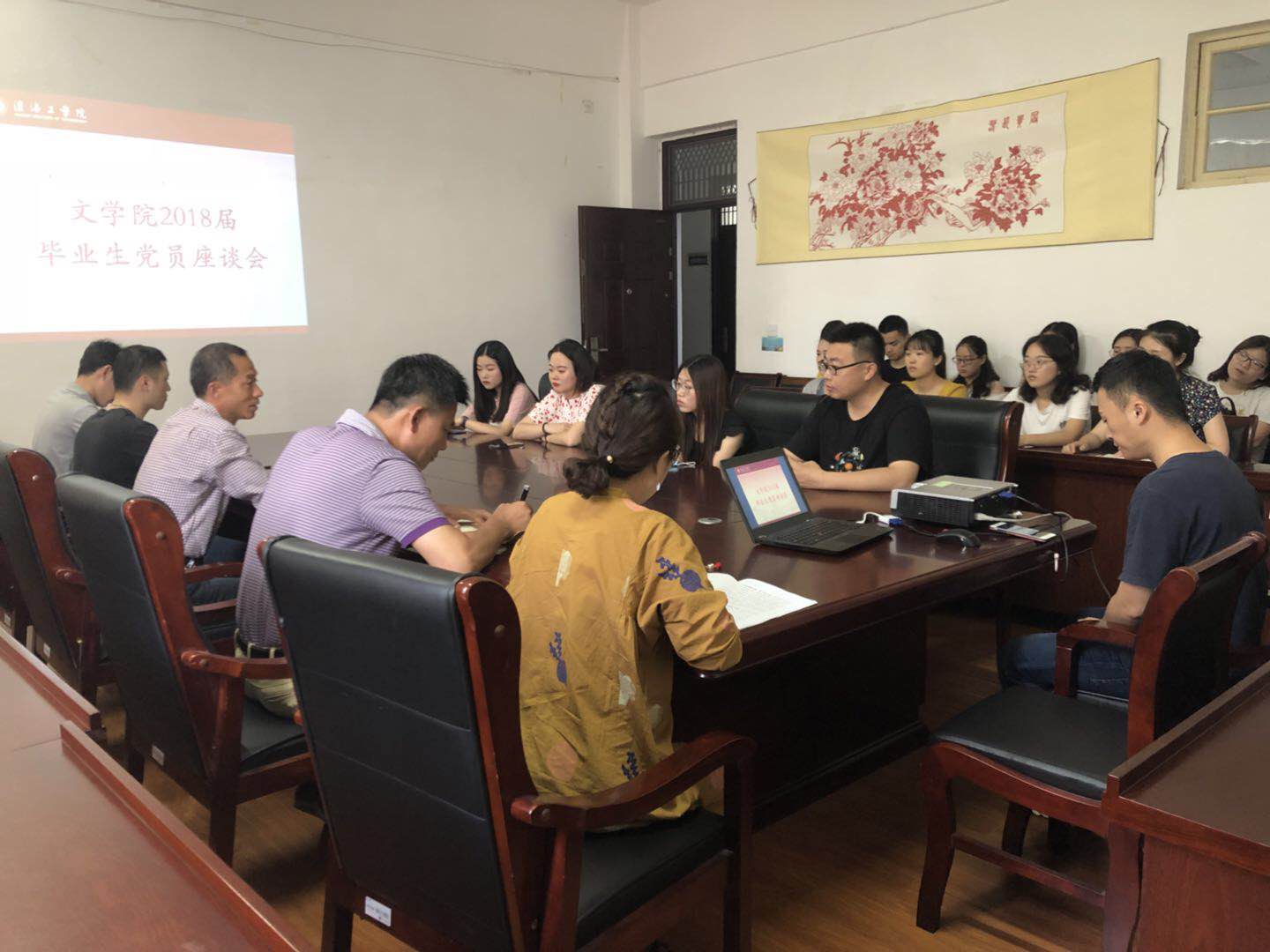 在2018届毕业生即将告别母校之际,为进一步增强毕业生党员的集体荣誉感和社会责任感,加强对毕业生党员的教育与培养,6月11日,文学院学生党支部在文渊楼306召开毕业生党员座谈会。学院党委书记马恒民、党委副书记田德勇、学生党支部书记、支部全体党员参加会议。