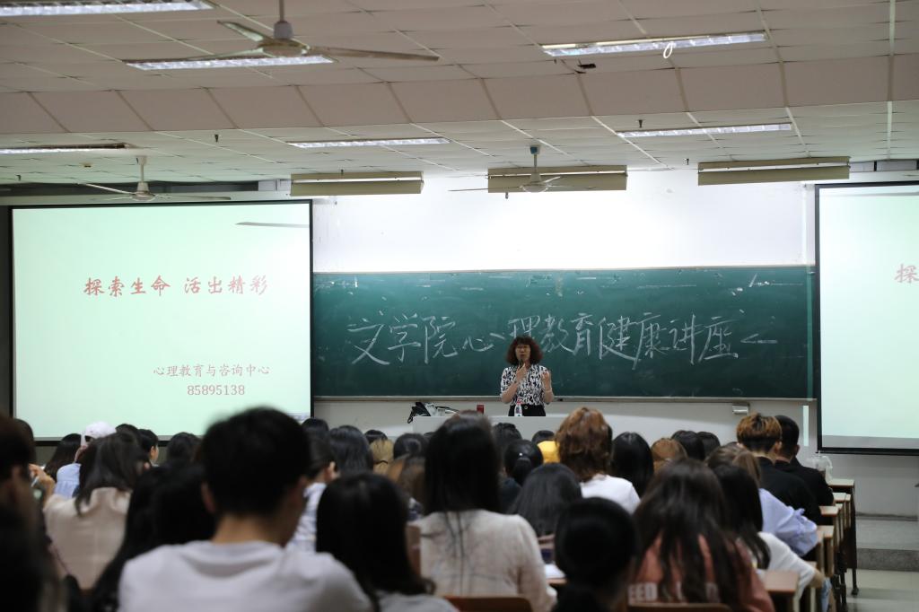 6月3日晚7时,“探索生命,活出精彩”文学院心理健康教育讲座在通灌校区至善102教室正式开展。校学生处解如华老师担任主讲,文学院2017级全体学生参与活动。