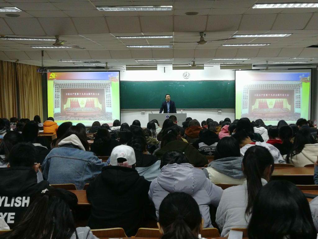“苏联解体,东欧剧变,面对动荡的国际环境,中国走出了自己的道路。”黄吉庆以生动的案例衬托出中国特色社会主义道路的伟大意义。在文化方面,他以韩国的文化输出为例,勉励同学们主动肩负起树立我国文化自信的责任。就“实现中华民族伟大复兴中国梦”,他以生动的图片为例,对比连云港以及淮工今夕的变化,由“中国梦”过渡到“青春梦”,他鼓励同学们脚踏实地,开拓进取,实干托起“中国梦”与“青春梦”。关于“科学发展观”,他重点强调了生态文明建设的重要性,“生态文明建设,是人民美好生活需要的重要环节”。谈到党的建设时,他以两学一做和从严治党为切入点,描述了党建的新篇章。