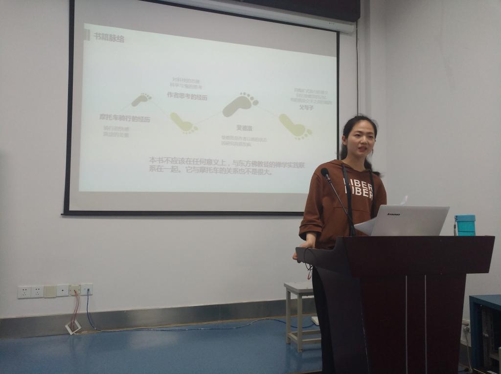 本次活动主题为“品阅书香,读享青春”。共有20位同学带着自己的阅读书目和体会参与了本次活动。大家用精心准备的PPT和讲稿,向同学们推荐了对自己影响巨大的书籍。涉秘141的朱妍秋推荐了海明威的冰山创作原则的起始之作——《太阳照常升起》;“人生碌碌,竞短论长,却不道荣枯有数,得失难量”,新闻152的李梦宇分享的《浮生六记》颇有深意;高秘141的李梦凡同学带来的《禅与摩托车维修艺术》,理性与感性的碰撞,诗意与科技的融合,引人深思;《站在两个世界的边缘》,“天堂未必在前方,但地狱一定在身后”,中文163的孙静同学分享的是一本当代书籍,同时就该书发表了自己的见解,十分精彩。