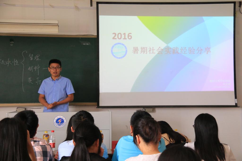 分享会上,前来参加经验分享的嘉宾们依次用PPT展示了暑期社会实践需要注意的各项事宜。来自商学院的陈赟同学分别从项目筹备、实践进程、媒体报道和活动总结等几个方面对社会实践进行了概括式讲解,使在场的同学对于暑期社会实践的具体流程有了一定的了解;来自法学院的梁睿斯同学的分享内容则侧重于社会实践的趣味性,一张张趣味横生的照片,一段段喜乐共享的故事,向我们描绘了一段段难忘的社会实践经历,正如她所说的那一句“生命不息,实践不止”;而来自测绘学院的徐文正同学就“资源”展开了讲述,人力资源、物质资源、宣传资源以及媒体资源都是社会实践不得不考虑的问题。针对这些问题,徐文政与大家分享了他积累的宝贵经验。