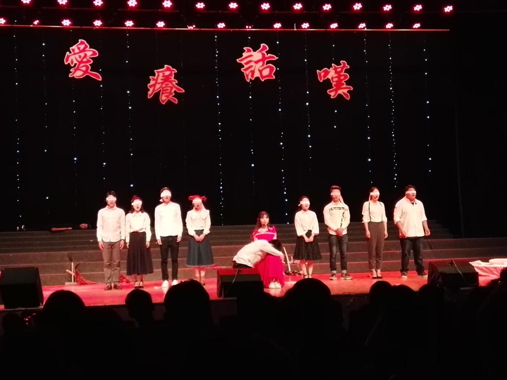 “爱情是多么美好,但是不堪一击......”伴随着缓缓亮起的灯光,一群拿着抹布、扫帚、鸡毛掸的演员齐唱着歌出场了,压轴大戏《恋爱的犀牛》上演。剧中的主角一个是物质少女明明,与一心爱着明明而又热爱动物的马路,全局淋漓尽致地演绎了两个人相爱相守相恨的爱情旅程。面对恋人的绝情,马路只能心痛的呐喊,继而陷入深深的自我折磨之中。“你是我温暖的手套,冰冷的啤酒,带着阳光味道的衬衫,日复一日的梦想。”“你是聪明的,灵巧的,伶牙俐齿的,逾不可及的,我心爱的,我的明明......”这部戏由于剧情的复杂,一个女生表示“太烧脑了,太虐了,演员太入戏了。”男主角马路的一段经典台词“一切白的东西和你相比都成了黑墨水而自惭形秽,一切无知的鸟兽因为不能说出你的名字而绝望万分,”更是引起了台下观众的共鸣。全场喝彩声不绝于耳,欢呼声此起彼伏。