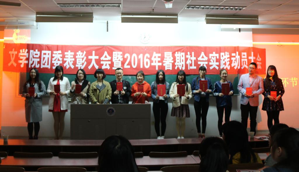 为表彰先进,动员同学们积极参与暑期社会实践,4月10日晚,在通灌校区至善楼202教室,召开文学院团委表彰大会暨2016年暑期社会实践动员大会。