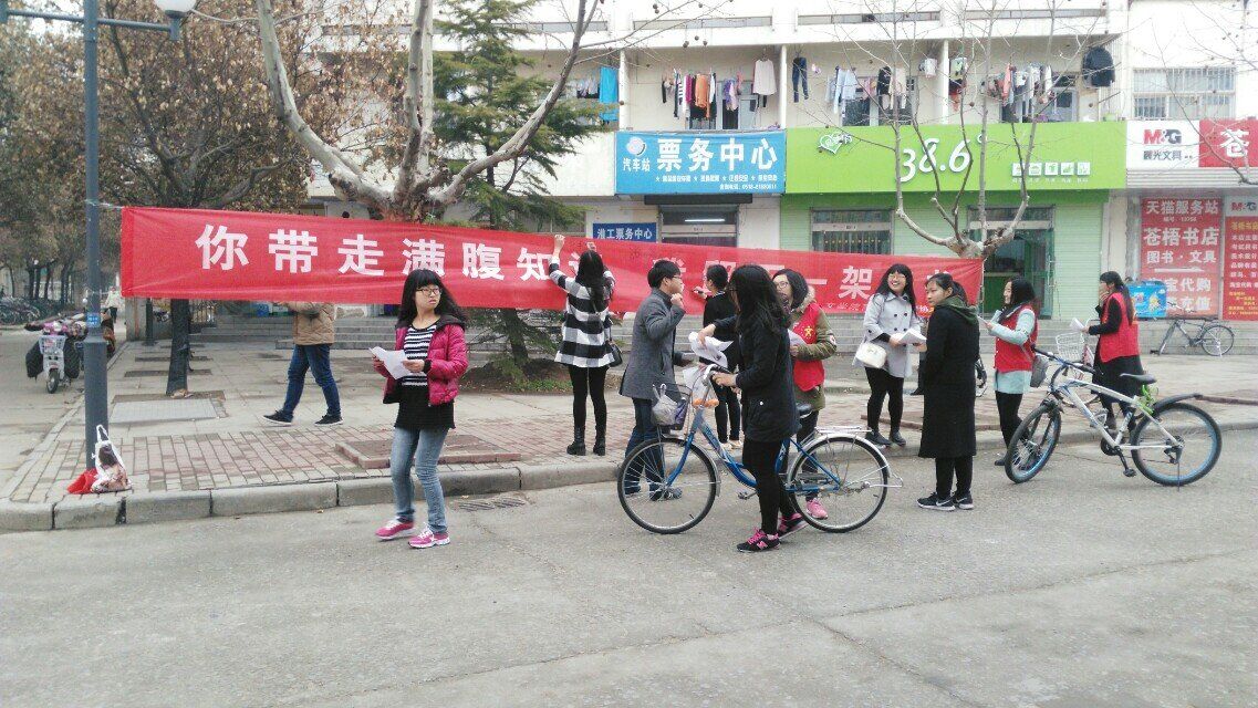 文学院青协在一食堂的马路旁进行主题为“你带走满腹知识,我留下一架好书”的宣传活动,号召学生在图书馆看书后及时将书放回原位,不仅减轻图书管理员整理图书的压力,也能帮助大家养成良好的读书习惯。