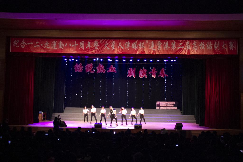 12月5日晚,由连云港市文学艺术界联合会和共青团淮海工学院委员会主办,共青团淮海工学院文学院委员会承办的纪念一二˙九运动八十周年暨连云港市第二届高校话剧大赛在淮海工学院苍梧校区大礼堂拉开帷幕。