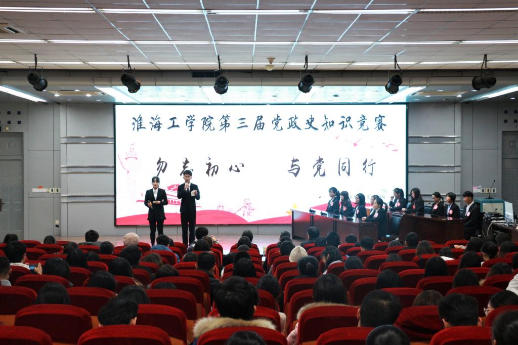 11月21日晚7时,淮海工学院第三届党政史知识竞赛决赛在艺术楼报告厅拉开帷幕。经过初赛笔试的重重选拔,10名同学从400余名参赛选手中脱颖而出,角逐比赛桂冠。马克思主义学院党总支书记张学武、马克思主义学院副院长沈春梅、法律与公共管理学院党总支副书记、副院长黄金虎,校团委组宣部副部长郭戈,法律与公共管理学院团委书记崔家新出席比赛并担任评委。