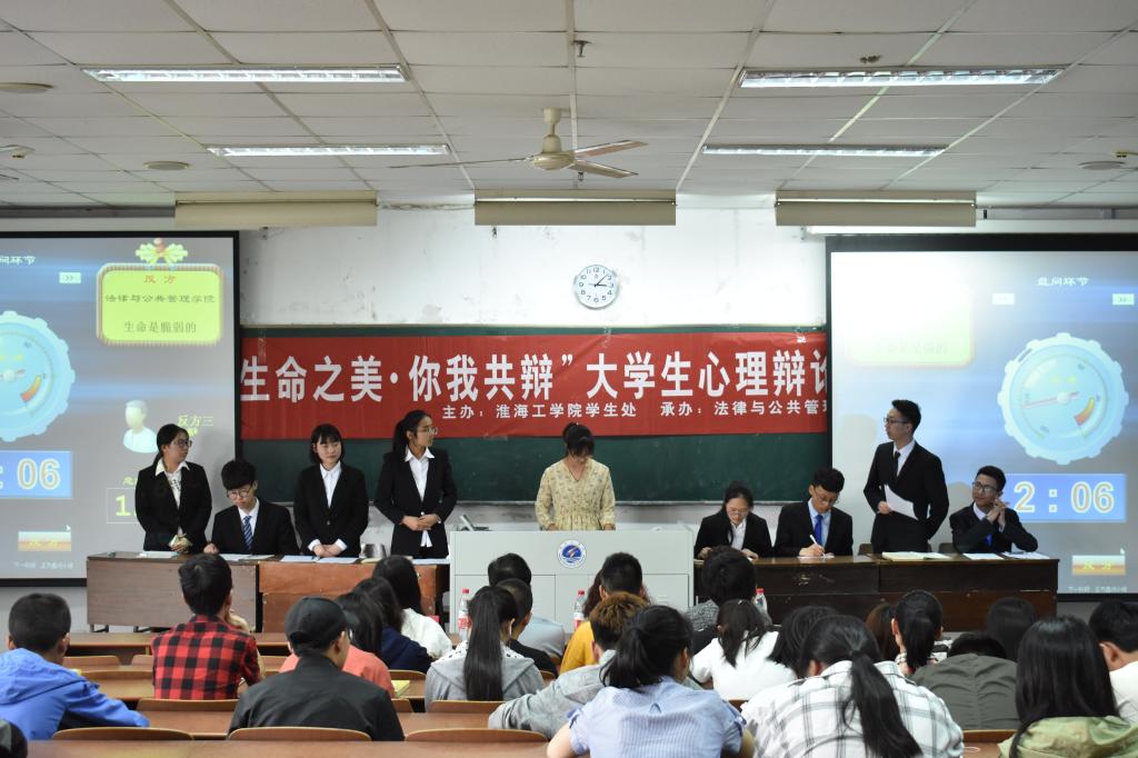 5月20日下午,由淮海工学院学生处主办,法律与公共管理学院承办的“生命之美· 你我共辩”大学生心理辩论赛在通灌校区TZ410如期举行。校心理中心主任解如华、药学院院长助理李海南、法律与公共管理学院党总支副书记、副院长黄金虎、辅导员蒋莹莹以及通灌校区的部分学生参与了本次辩论赛。