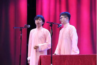 经过激烈的角逐,张鑫宇和顾家铭的相声表演《快板漫谈》以其独特的艺术风格和精湛的演技赢得了观众的热烈掌声和高度评价,荣获第一名。他们的表演不仅展现了相声的艺术魅力,更体现出当代大学生的创新精神与文化自信。