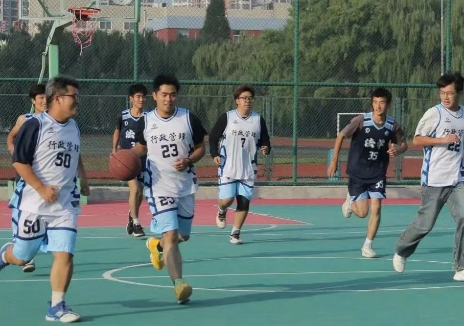 第一场精彩的比赛过后,法学队与行管队的球员们也已跃跃欲试。一声哨响过后,比赛正式开始。行管队球员们配合默契,以精准的上篮率先夺得“开门红”。法学队也步步紧逼,用一连串精彩的两分球和三分球回应着对手的挑战。两队球员在场上你追我赶,互不相让,每一次交锋都充满了力量和技巧的较量。最终,法学队以20:9的比分暂时领先于行管队。
