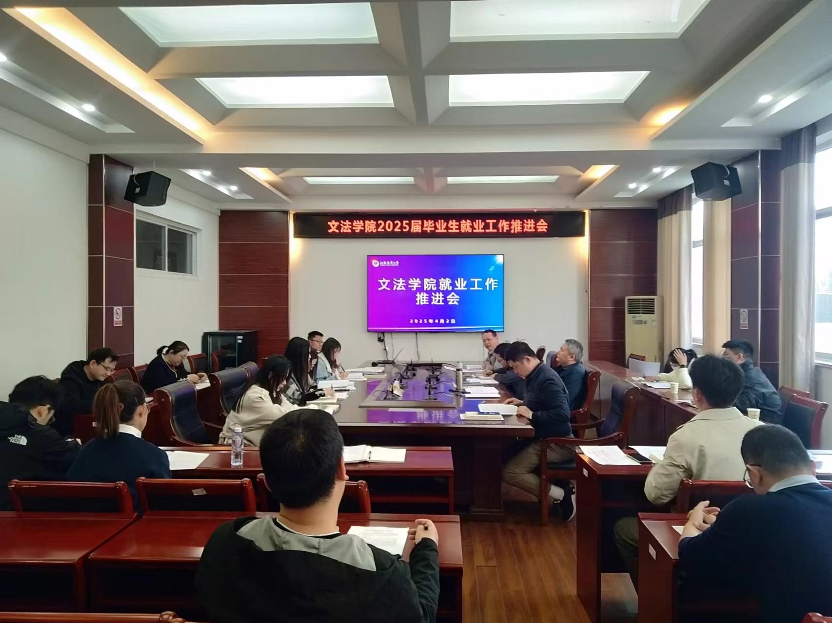 4月2日下午3时,我院在文渊楼216室召开2025届毕业生就业工作推进会,党委副书记王国银主持会议。文法学院院领导、系主任、班主任、辅导员参加会议。