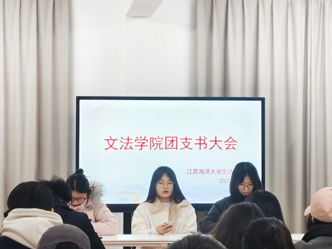 2025年3月12日晚6时30分,江苏海洋大学苍梧校区学生社区A9/A10-205会议室气氛热烈,文法学院团支书大会在此顺利召开。本次会议由团委・大成负责人董玲慧、杨炜苇和张馨匀主持,文法学院全体团支书参与,共同聚焦近期学生工作重点,为我院共青团工作质量的提升谋篇布局。