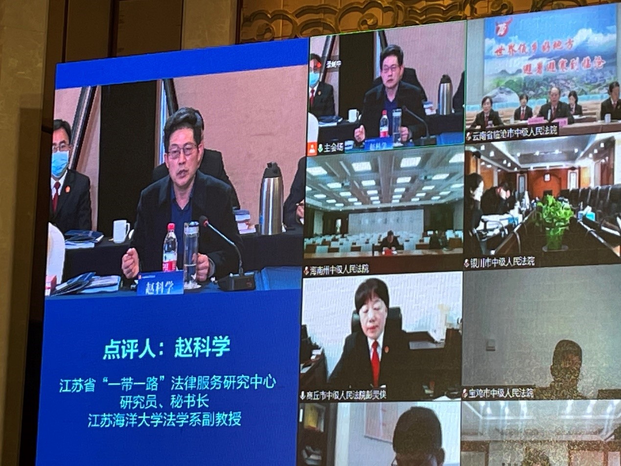 江苏省“一带一路”法律服务研究中心研究员、秘书长、江苏海洋大学副教授赵科学,研究中心研究员、办公室主任、江苏海洋大学法学系主任吴建国副教授应邀参加了会议,赵科学担任会议论文点评人。
