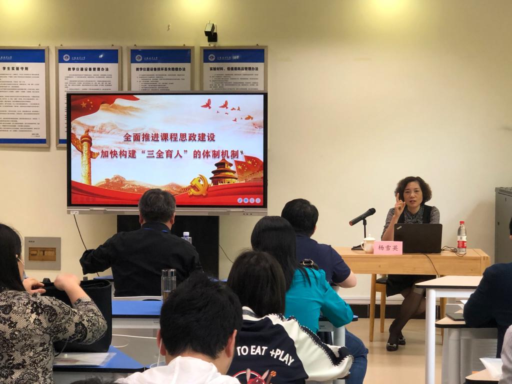 杨雪英教授作了《全面推进课程思政建设,加快构建“三全育人“的体制机制》的专题报告。从“课程思政”的背景、准确把握“课程思政”的内涵、“课程思政”的实践探索和关于“课程思政”建设的体会这四个方面进行了全面分析与讲解,为在场所有人作了一个精彩纷呈的报告。杨部长首先解读了习近平总书记在全国高校思想政治工作会议上发表的重要讲话精神。接着讲到要以学生为中心,遵循思政工作规律、教书育人规律和学生成长规律,用好课堂这个主渠道,做好坚持办学正确的政治方向、建设高素质教师队伍、形成高水平人才培养体制三项基础工作。准确讲解了“课程思政”的含义,指出推进“课程思政”建设的关键是教师,让学生因“课程思政”系好人生第一粒扣子。这次报告会,使我院老师对“课程思政”建设有了更加全面的认识和深刻的理解。