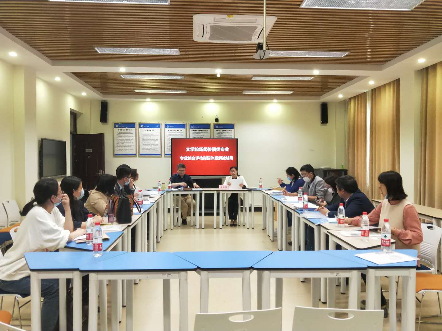 根据江苏省教育评估院年度工作安排,江苏海洋大学文学院新闻传播类专业今年将接受省级专业综合评估。为准确理解评估指标体系,积极做好迎评工作,文学院5月13日下午邀请学校教学质量管理处处长安俊丽来院指导,解读江苏省专业综合评估指标体系。会议由文学院院长吴明忠主持,教学质量管理处质量科科长李华和文学院新闻系、广告系全体教师参加会议。