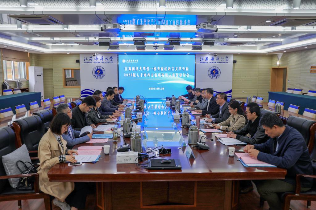 2020年5月8日,文学院在会议中心东海厅召开江苏省一流专业汉语言文学专业人才培养方案用人单位研讨会。中共连云港市委宣传部常务副部长王修杰等9位用人单位和校友代表到会研讨。宁晓明校长到会亲切看望用人单位和校友代表,发表了热情洋溢的欢迎辞。严云洋副校长全程出席会议并讲话。学校教务处处长乔斌,教学质量管理处处长、教师发展中心主任安俊丽到会指导。会议由文学院院长吴明忠主持。党委副书记田德勇,文学院学术带头人、中文系专业负责人王恩建,中文系主任袁丁和教授代表张景兰等参加会议。